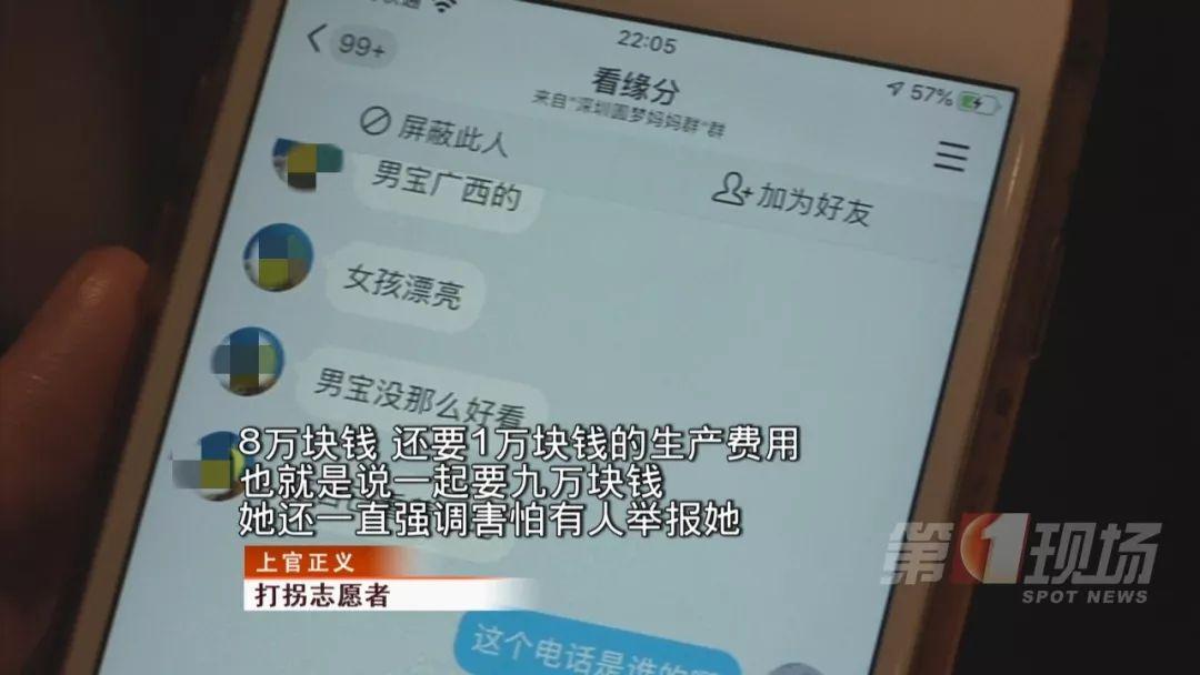 最近,一個(gè)黑色的地下販嬰鏈被揭開,一名來自深圳的網(wǎng)友在QQ群里發(fā)布消息:要出售一個(gè)女嬰,8萬(wàn)塊,再加1萬(wàn)元生產(chǎn)費(fèi)用,攏共9萬(wàn)。9萬(wàn),這網(wǎng)友就把親生閨女賣了