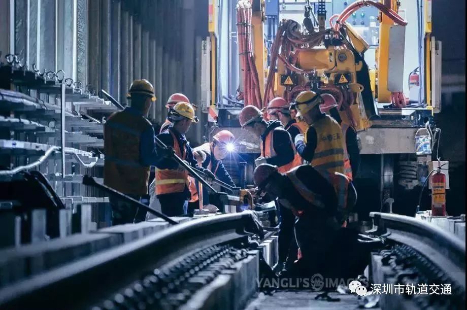 為了不影響4號(hào)線(xiàn)的正常運(yùn)營(yíng),面對(duì)有限的施工條件和緊張的作業(yè)時(shí)間,港鐵(深圳)運(yùn)營(yíng)處基建維修部、北延段項(xiàng)目部及建設(shè)方中鐵三局共同協(xié)商決定,將此次作業(yè)分兩晚,利用移動(dòng)式焊接車(chē)進(jìn)行。