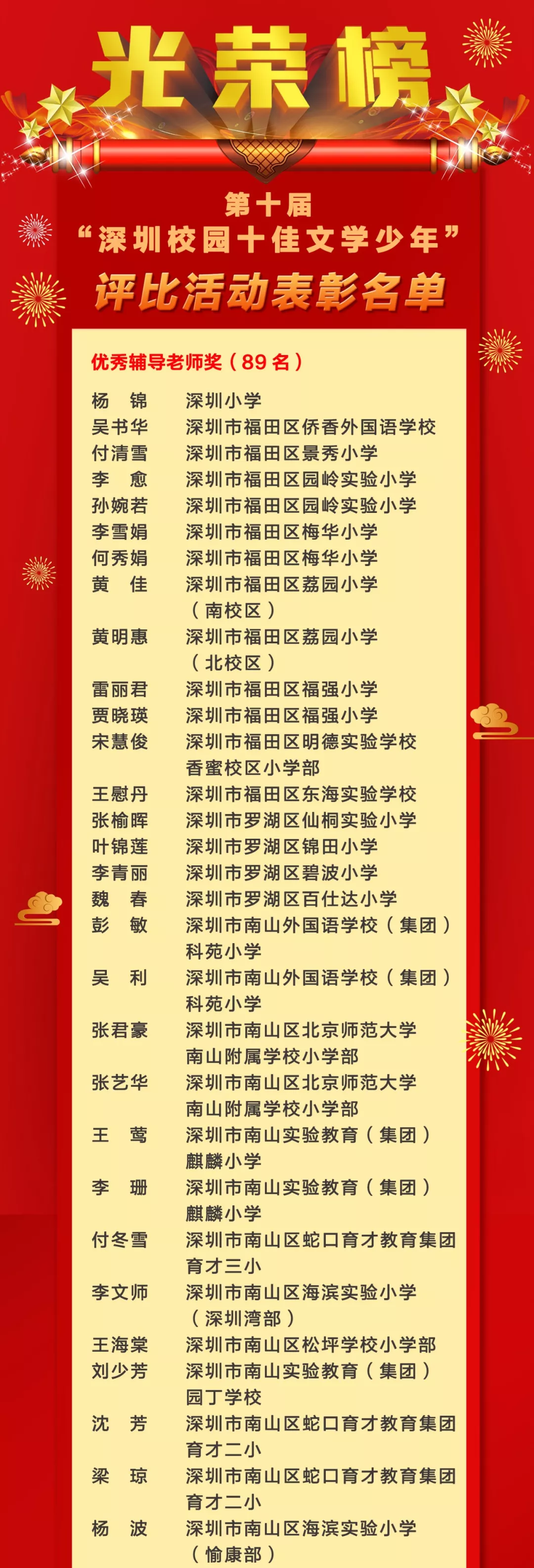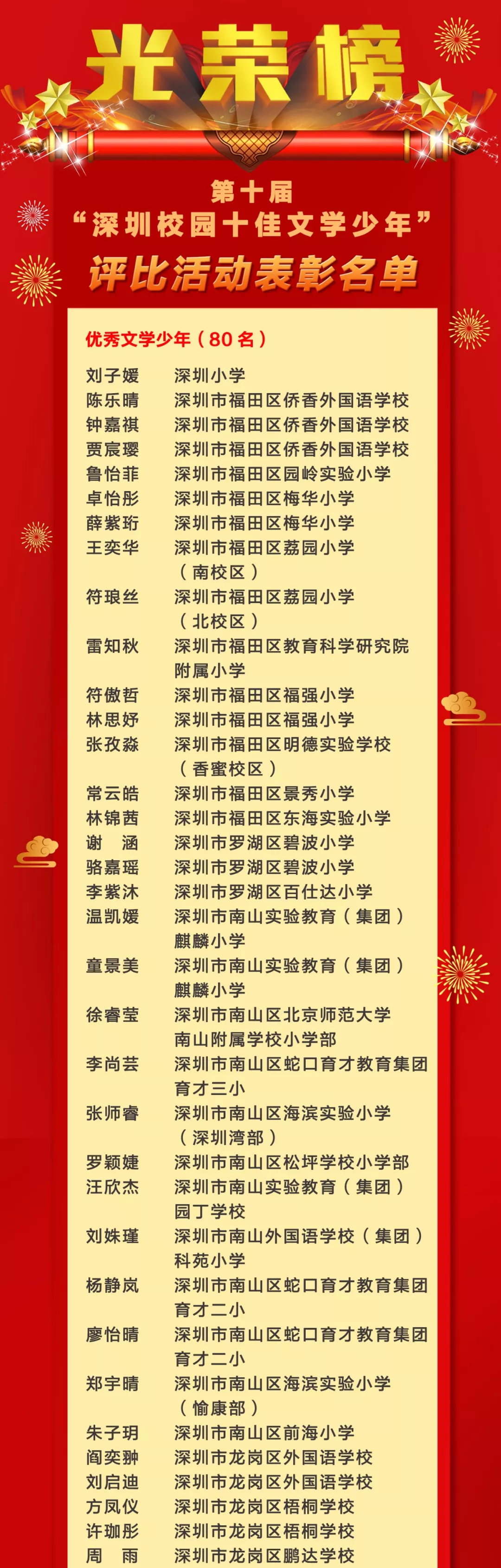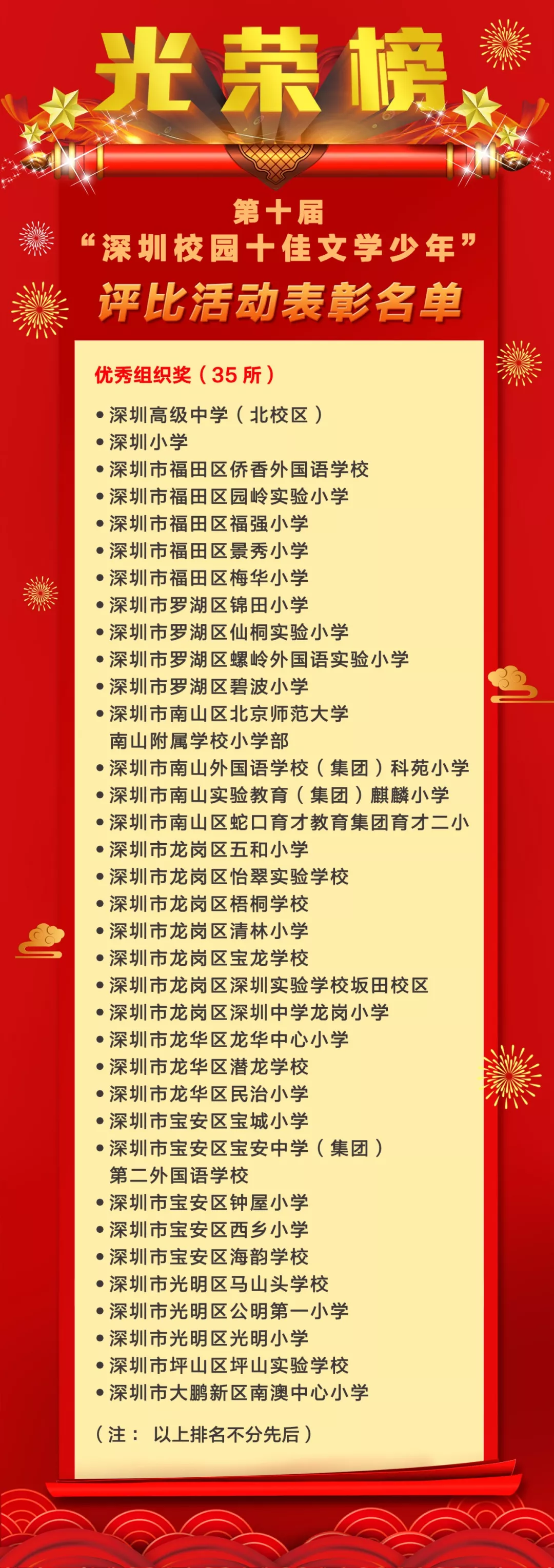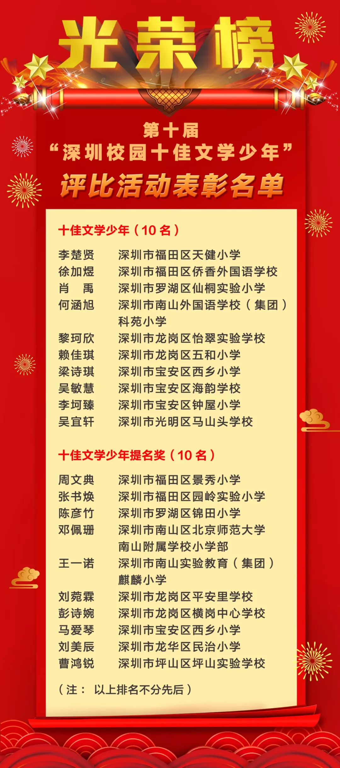 第十屆“深圳校園十佳文學(xué)少年”評(píng)比活動(dòng)表彰名單