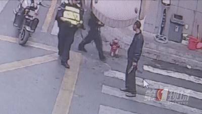 當時,就在離園門口大概15米的距離,一個醉酒的男子,手拿兩把菜刀,在這里徘徊了一會,當時朝我們校門口看了一下,看到我們校門口有兩名校衛(wèi)站在那里馬上他就慢慢往前方移動。