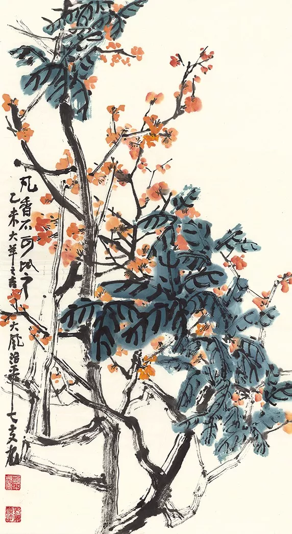 魏治平的藝術貴于創(chuàng)造,以書法入畫,畫中常見有篆書筆意。三十年前長江日報總編海洋先生,曾提筆寫下《魏瘋子傳奇》,洋洋灑灑八千言,一時間荊楚大地震動。西泠印社理事朱妙根稱其“方寸之間有靈山,紅花墨葉又一派”。西泠印社執(zhí)行社長、中國印學博物館館長劉江先生為其第一本書畫作品集題簽書名。美國前總統(tǒng)老布什收有魏老書法作品“龍蛇競走舞長空、點染梅花分外紅。且賦新詩遙寄意,長江密水兩相通”。印第安納州州立大學博物館大廳懸掛的便是魏老八尺紅梅詩書畫中堂。