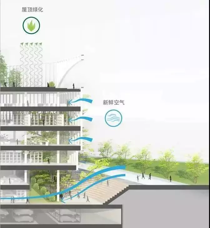 屋頂農(nóng)場充分利用空間,打造天空農(nóng)場、親子樂園、屋外運動場??罩械呐艿溃饰值耐寥?,瓜果蔬菜的金色豐收,讓自然在城市落地生根。小朋友們可以在其中,種植汗水,開花結(jié)果,收獲自然的饋贈。