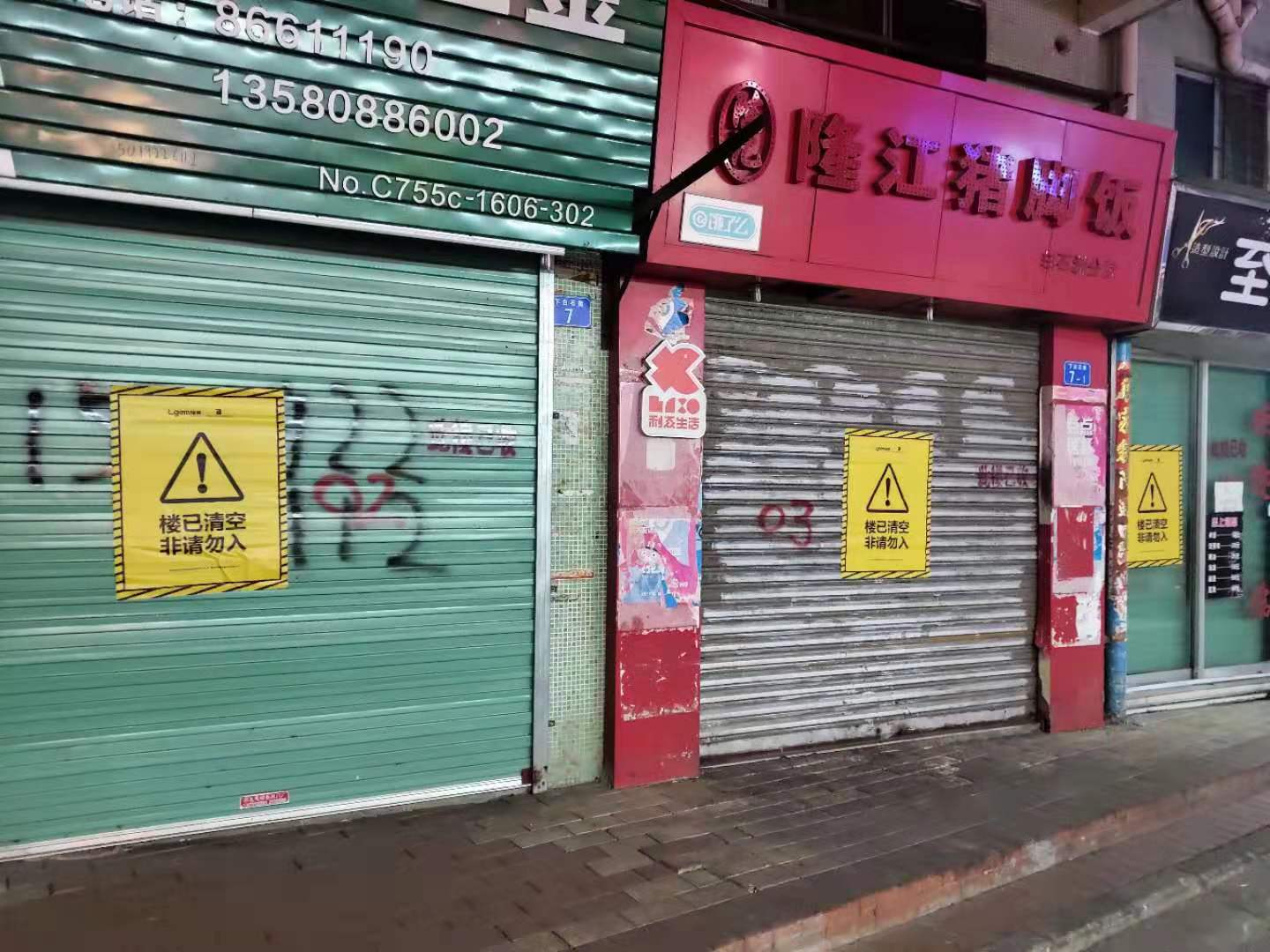 但如今租戶(hù)逐漸搬走,這里的商鋪大部分也已關(guān)門(mén),沒(méi)有住戶(hù)的樓里黑燈瞎火。一部分住宅樓已經(jīng)被清空,樓下甚至搭起了圍擋,“樓已清空、非請(qǐng)勿入”的標(biāo)語(yǔ)隨處可見(jiàn)。巷子里偶爾遇見(jiàn)行人,卻不見(jiàn)形色匆匆,似乎少人的通道,總能讓人感到愜意。