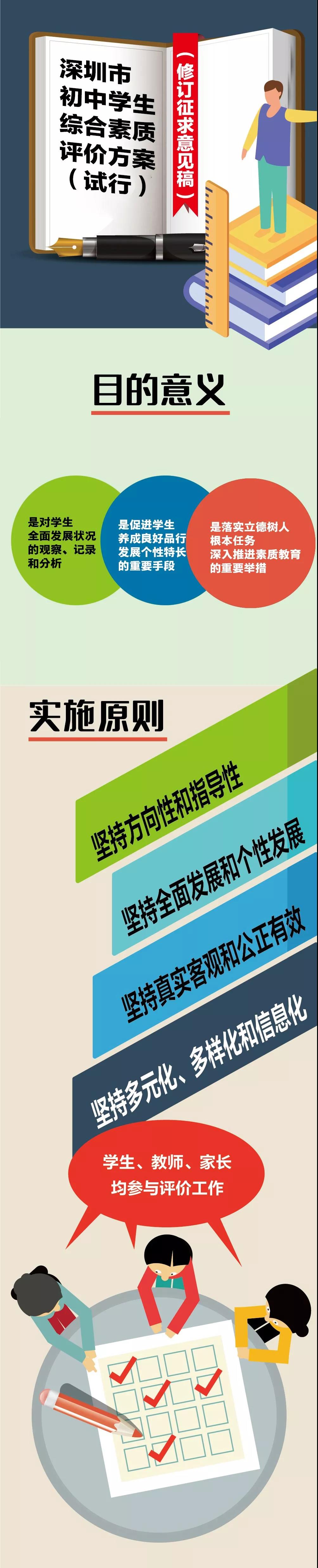為深入貫徹中共中央、國(guó)務(wù)院《關(guān)于深化教育教學(xué)改革全面提高義務(wù)教育質(zhì)量的意見(jiàn)》和《教育部關(guān)于進(jìn)一步推進(jìn)高中階段學(xué)??荚囌猩贫雀母锏闹笇?dǎo)意見(jiàn)》(教基二〔2016〕4號(hào))、《廣東省教育廳關(guān)于實(shí)施初中學(xué)生綜合素質(zhì)評(píng)價(jià)的指導(dǎo)意見(jiàn)(試行)》(粵教基[2018]10號(hào))等文件精神,落實(shí)立德樹(shù)人根本任務(wù),“五育并舉”,促進(jìn)學(xué)生的全面發(fā)展和個(gè)性發(fā)展,根據(jù)工作需要,深圳市教育局于2019年12月11日啟動(dòng)了《深圳市初中學(xué)生綜合素質(zhì)評(píng)價(jià)方案(試行)》的修訂工作。在大量調(diào)研論證、多方征求意見(jiàn)的基礎(chǔ)上,形成了《深圳市初中學(xué)生綜合素質(zhì)評(píng)價(jià)方案(試行)(修訂征求意見(jiàn)稿)》。