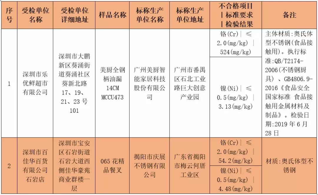 不合格項(xiàng)目均為:鎳(Ni)、鉻(Cr)
