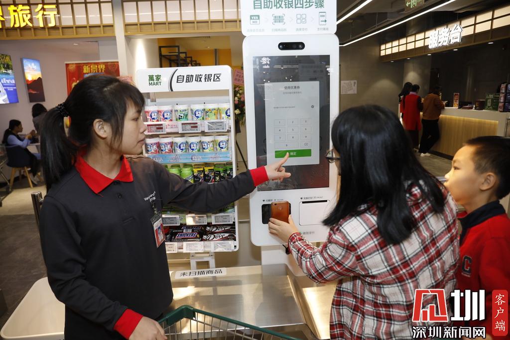 自主買(mǎi)單區(qū)域,兩位市民正在結(jié)賬。