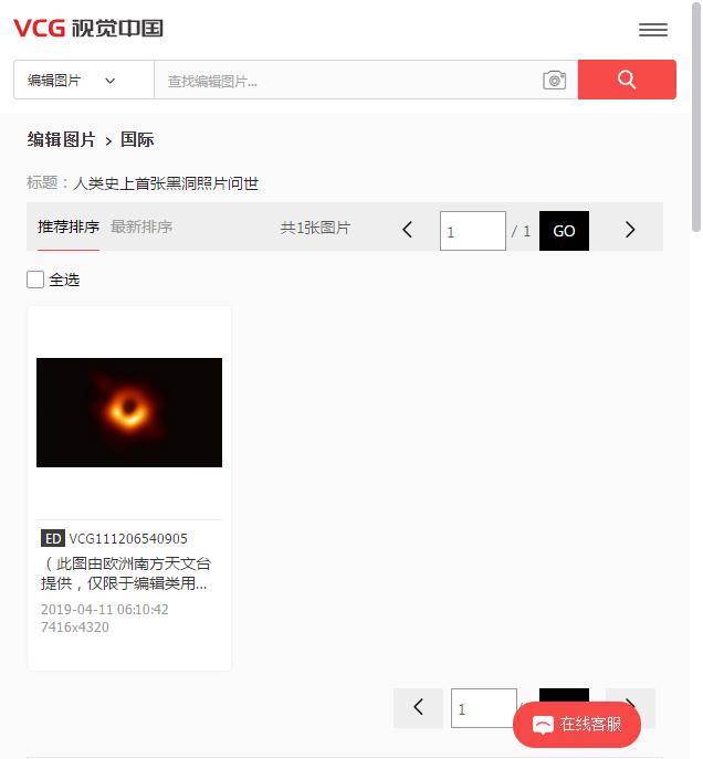 這就是網(wǎng)上爆出的視覺(jué)中國(guó)圖庫(kù)里里收錄的黑洞照片的頁(yè)面截圖。