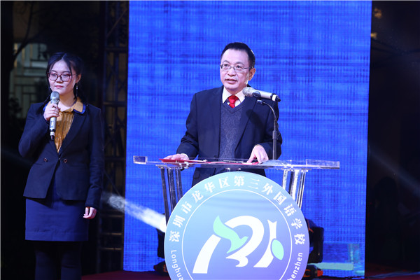 在晚會正式開始之前,聶細剛校長在致辭中提到,深圳市龍華區(qū)第三外國語學校是一所致力于植根中國、面向世界的外國語品牌學校,培養(yǎng)具有中國精神、世界情懷的國際公民。同時,在借力于孔子學院、立足打造書香校園、弘揚中華民族優(yōu)秀傳統(tǒng)文化基礎(chǔ)上,借力于北京外國語大學、北京師范大學,在全力推進英語雙師云課堂。同時,開設(shè)了俄語、法語、韓語等小語種選修課,未來還將開設(shè)日語、德語、西班牙語等小語種,凸顯外國語特色品牌。學校成為全國美育名校聯(lián)盟學校,北京師范大學項目實驗學校,北京外國語大學課題實驗基地,泰國曼松德大學孔子學院漢語教學交流基地等;吸引了一大批來自清華大學、北京大學、北京師范大學、愛丁堡大學、曼徹斯特大學、西班牙武康大學等國內(nèi)外知名高校的優(yōu)秀人才加盟。學生舞蹈團首次登上2020年廣東省少兒春晚的舞臺。在第五屆深圳教育改革創(chuàng)新大獎評比活動中,榮獲“2019年度家校共育典范學?!薄?/p>