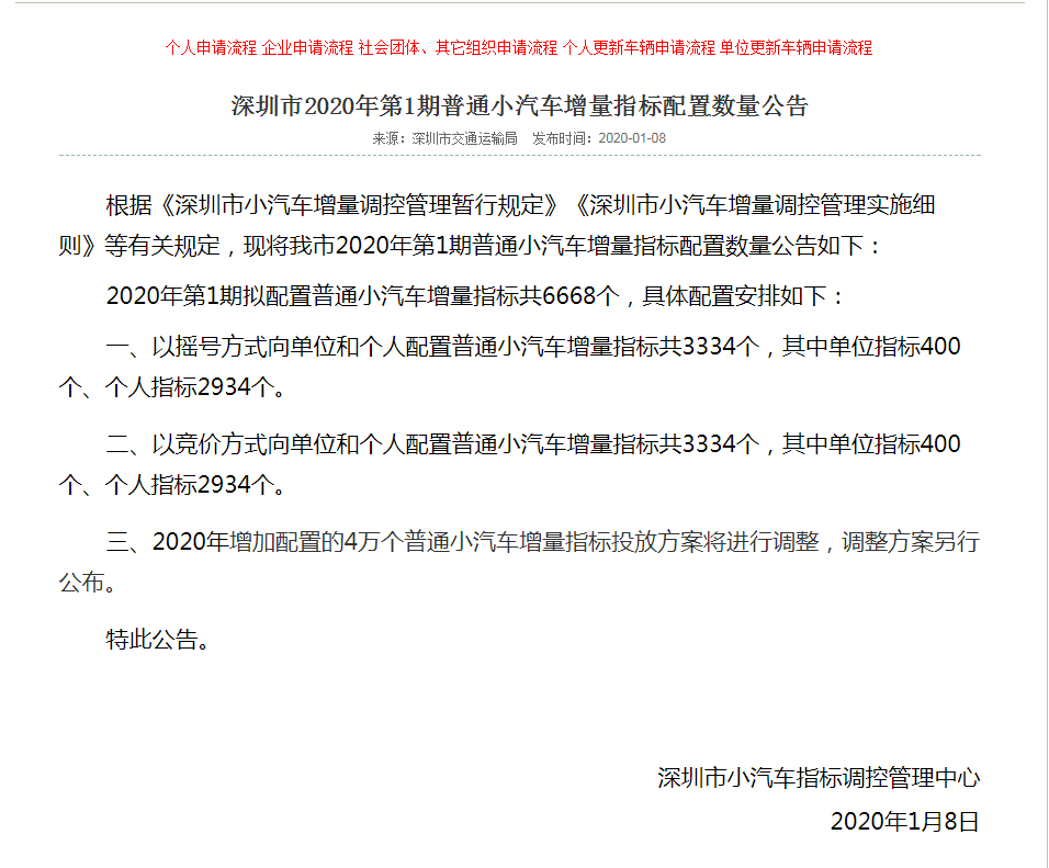 2020年深圳首期小汽車搖號(hào)競價(jià)推遲一周,順延至節(jié)后第一個(gè)工作日1月31日。