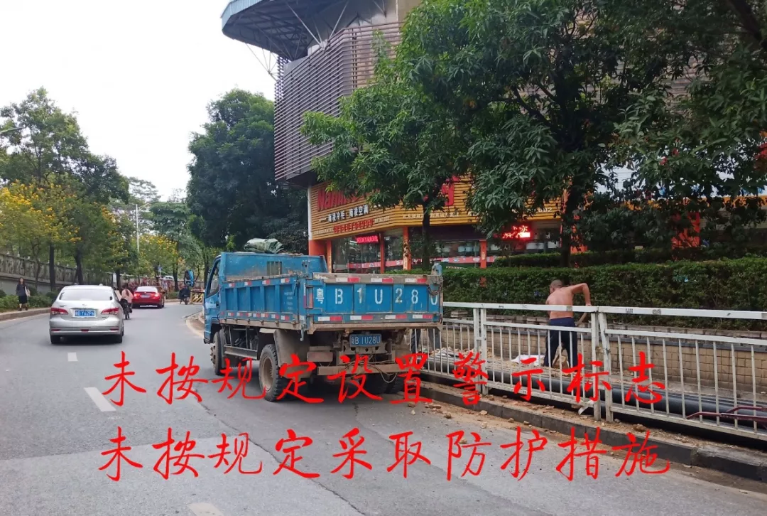 并且現(xiàn)場(chǎng)未按規(guī)范設(shè)置安全防護(hù)及警示