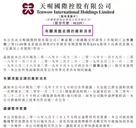 與此同時(shí),天喔國際更新了自家清盤呈請的最新消息。↓