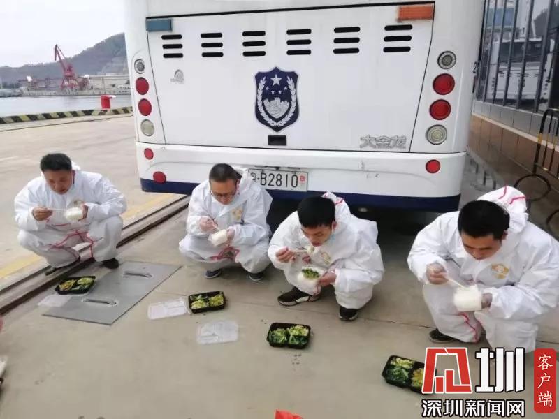 應急轉(zhuǎn)運“歌詩達·威尼斯號”乘客期間,工作人員抓緊時間吃午飯。