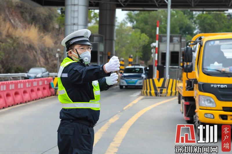 26日下午深圳黃鶴收費站,深圳交警對往來司機進行體溫檢測。