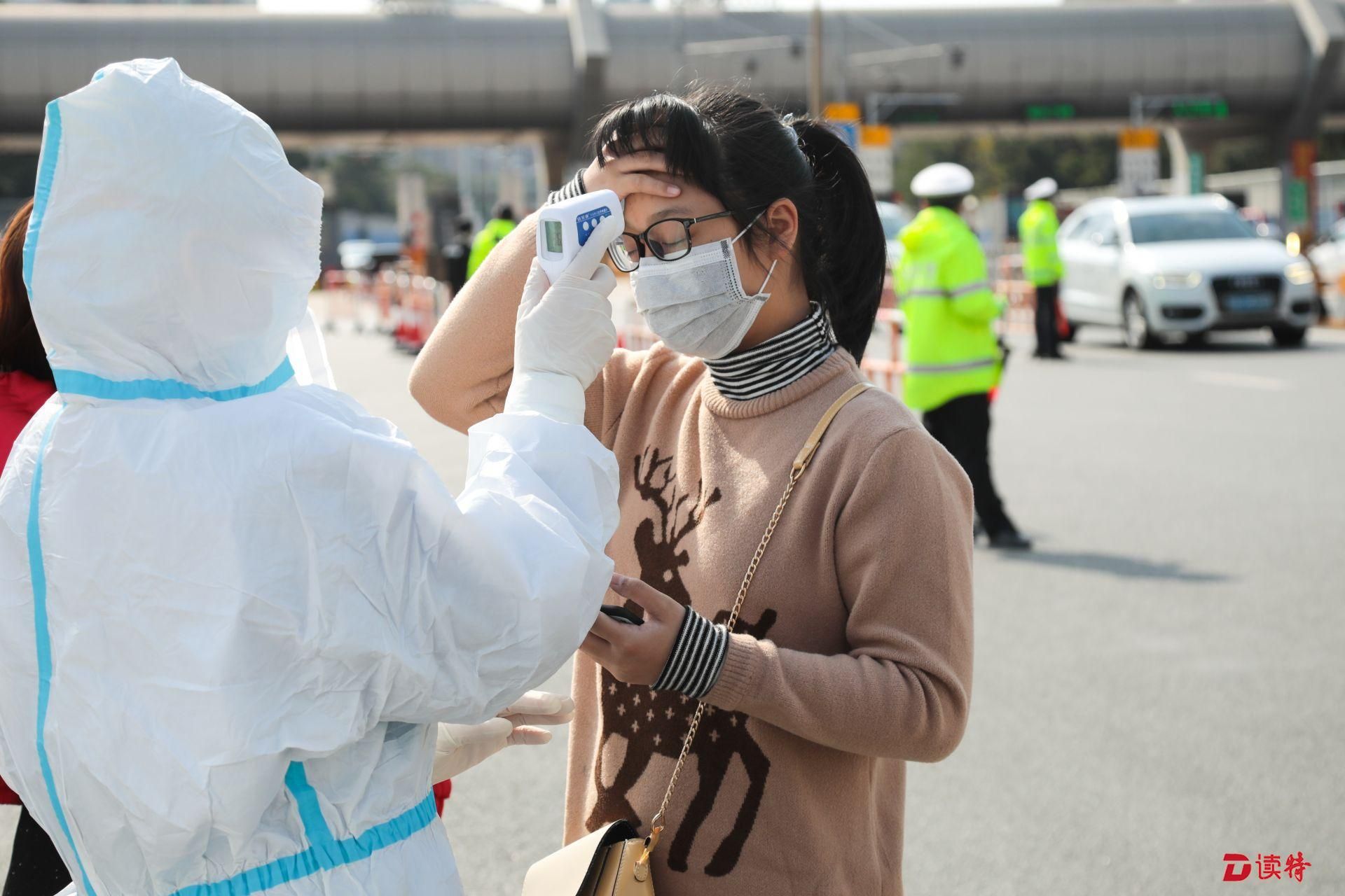 返深市民在交通檢疫點(diǎn)配合測體溫