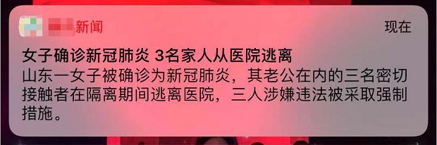 見圳客戶端?深圳新聞網(wǎng)2020年1月30日訊(見圳客戶端、深圳新聞網(wǎng)記者 張玲)這個春節(jié),有點不一樣。疫情當(dāng)前,需要全民齊努力。前不久一條新聞彈窗,相信很多人都看到了:山東一女子被確診為新型冠狀病毒感染的肺炎,她的老公等三名密切接觸者在隔離期間逃離醫(yī)院,三人涉嫌違法被采取強制措施。