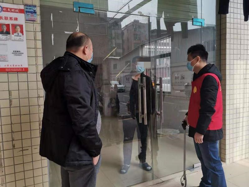 社區(qū)黨委書記黃雄光及班子成員帶頭深入居民小組,詳細了解湖北籍居家隔離人員生活需求。