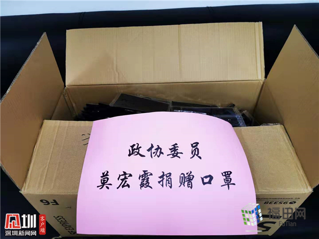 政協(xié)委員莫宏霞向香蜜湖街道捐贈(zèng)1000個(gè)口罩。
