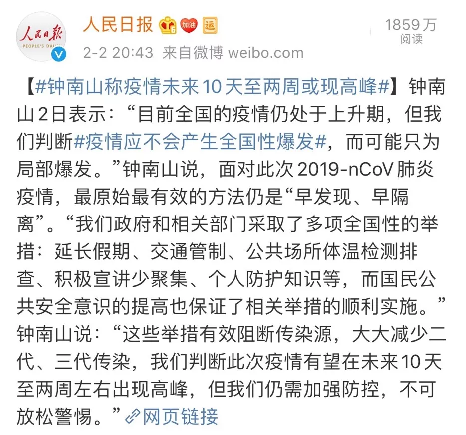 隨著近日“返深”的人越來越多,更多“難啃”的骨頭即將擺在我們面前。鐘南山在2日接受采訪時(shí)也表示,未來10天至2周,疫情或現(xiàn)高峰。