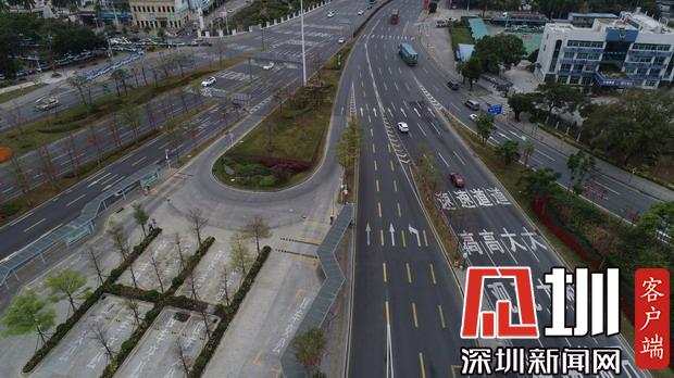 深南中路紅嶺中路路口,車輛相比平時大幅度減少。