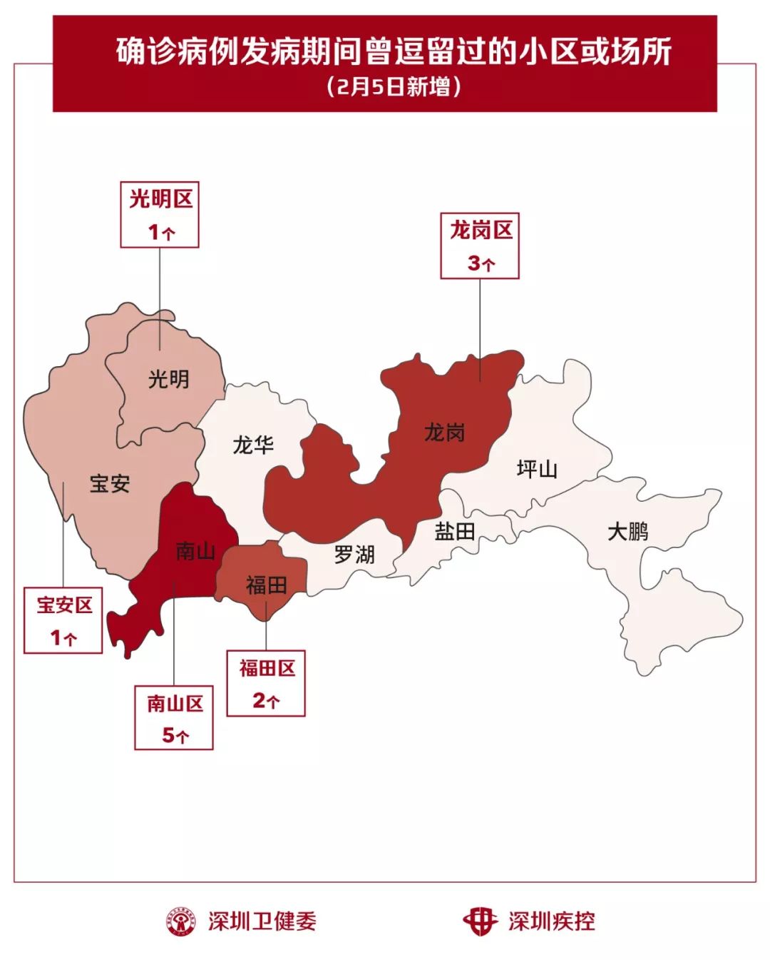 2月5日,疾控專業(yè)人員通過(guò)最新的流行病學(xué)調(diào)查確認(rèn),深圳新增12個(gè)小區(qū)(場(chǎng)所),有新確診的病人在出現(xiàn)病征期間曾經(jīng)逗留。