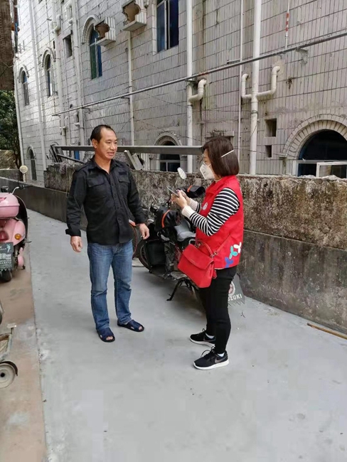 鄧考嫻:40歲,官湖社區(qū)網(wǎng)格員,工作11年,主要負(fù)責(zé)民宿、企業(yè)、出租屋、三小場所的入戶走訪登記排查、防疫相關(guān)知識宣傳。