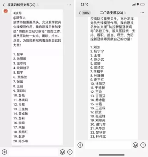 近日,在深圳市婦幼保健院的工作群里,全院黨員干部主動請纓,通過自愿報名的方式,申請加入到新型冠狀病毒的防控前線。