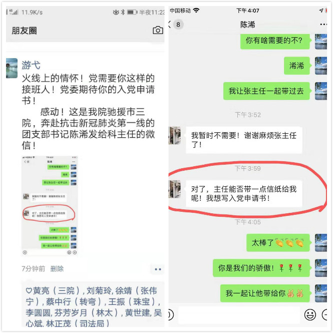 奔赴抗擊新冠肺炎一線的深圳市婦幼保健院團支書陳浠發(fā)給科主任的信息