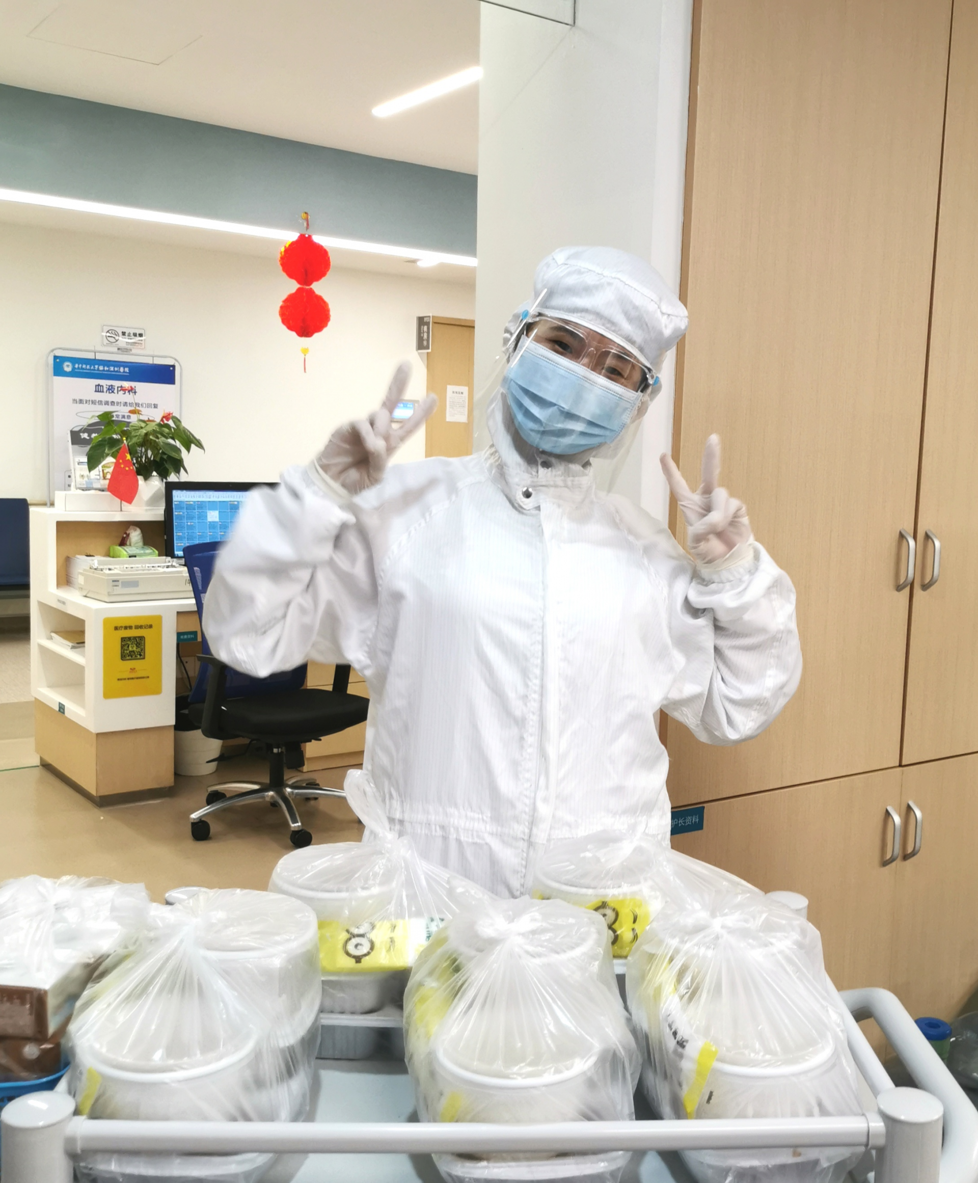 據(jù)了解,從1月中旬開始,協(xié)和深圳醫(yī)院很多堅(jiān)守一線的醫(yī)護(hù)人員已經(jīng)一個(gè)月沒有休息了,他們?nèi)找箠^戰(zhàn),已經(jīng)忘了今夕是何夕,很久沒有與家人團(tuán)聚了。一線醫(yī)護(hù)人員經(jīng)常要加班加點(diǎn),為了讓他們不餓肚子,醫(yī)院膳食科也全力保障餐飲的供給。