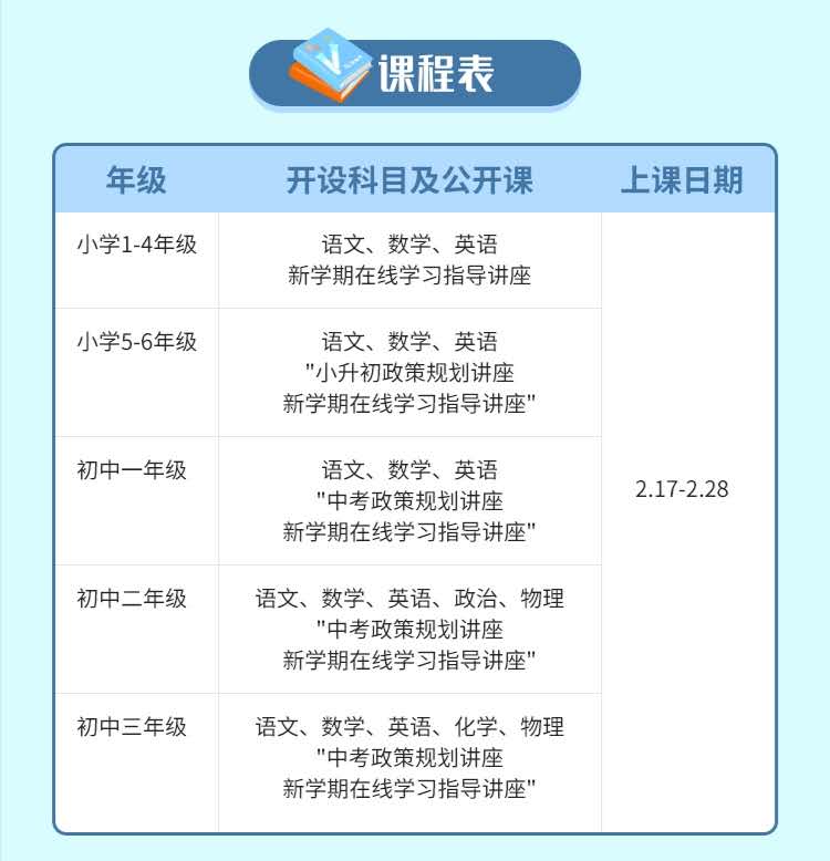 據(jù)悉,本次公益校內(nèi)同步直播課程涵蓋各年級(1-9年級),各學科(語文、數(shù)學、英語、政治、物理、化學等)?!案采w廣、課程精、師資強、服務優(yōu)、全免費”是本次直播課程的特色亮點。