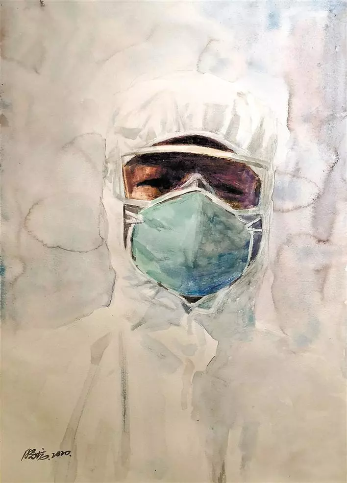 魯文詠在詩歌《最美的人,你看不見臉》中寫道:“最美的人,你看不見他們的臉。他們的臉被口罩遮著,被護(hù)目鏡遮著,被防護(hù)服遮著,有時(shí),也被夜色遮著。他們?cè)谌巳豪锎┬?,在焦灼的企望的目光里穿行。他們來了,他們穿過,焦躁的人群就安靜下來。最美的人,你看不見他們的臉,看不見年齡,甚至性別。是的,天使不計(jì)年齡,天使不分性別?!?/p>