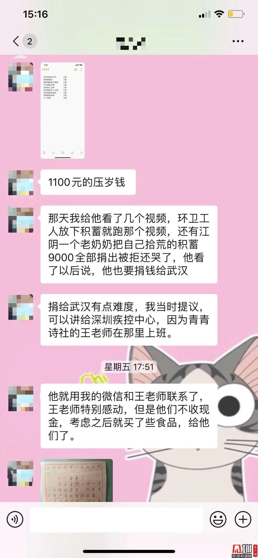 在肆虐的疫情面前,一名7歲的小男孩不惜動用了今年的全部壓歲錢1100元,購買食品捐贈給深圳市疾病預(yù)防控制中心。