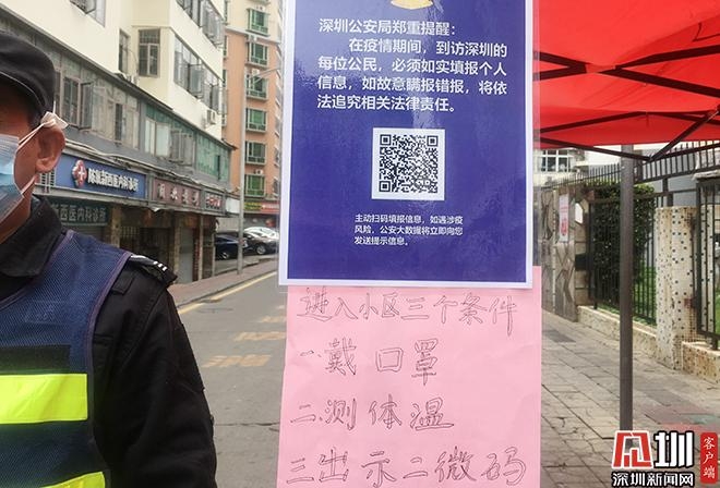 對(duì)于還未登記的市民或者剛返深的市民,該執(zhí)勤人員表示,他們可現(xiàn)場(chǎng)掃描二維碼,填報(bào)真實(shí)信息即可立即生成驗(yàn)證二維碼?!胺彩沁M(jìn)出人員,必須同時(shí)滿足三個(gè)條件:戴口罩、測(cè)體溫、出示二維碼,我們才放進(jìn)來(lái)。”該執(zhí)勤人員一邊檢查進(jìn)出人員信息,一邊向現(xiàn)場(chǎng)居民宣傳。(見(jiàn)圳客戶端、深圳新聞網(wǎng)記者 潘峰)