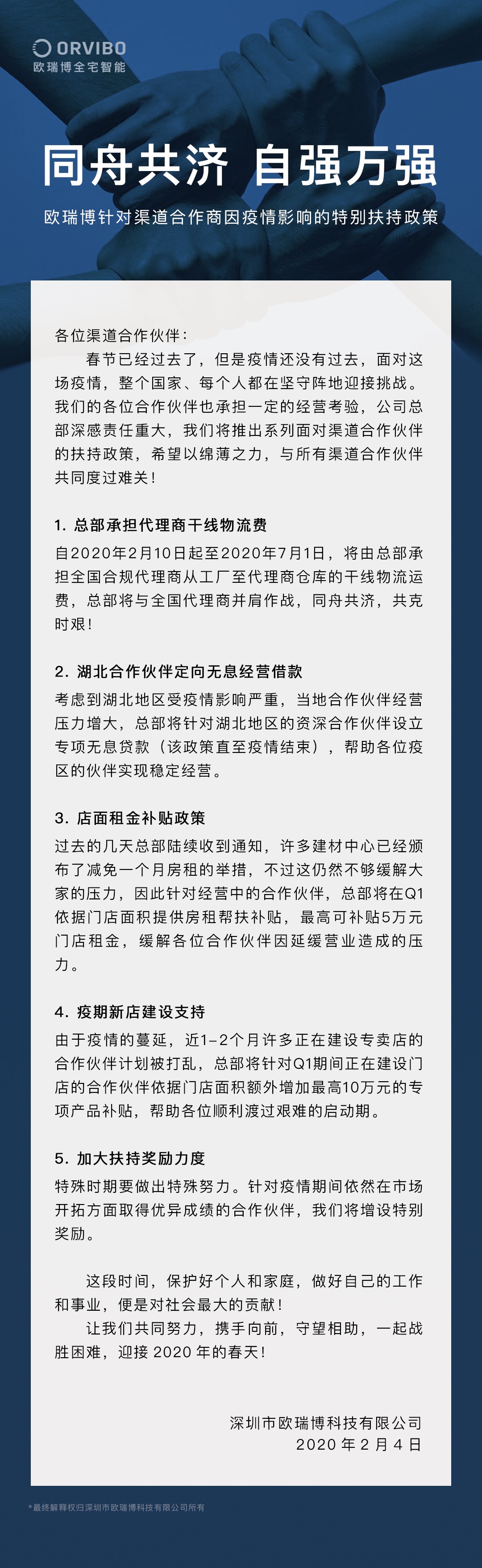 深企歐瑞博發(fā)布多項扶助政策 幫助合作商共渡疫情難關(guān)
