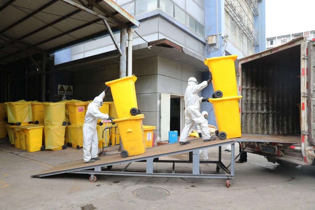 2月12日清晨,1輛廂式貨車緩緩駛進深圳市第三人民醫(yī)院門前,2名身穿防護服的工作人員將醫(yī)院產(chǎn)生的醫(yī)療廢物用多層垃圾袋進行密封,投入到了收集桶中。半小時后,35桶醫(yī)療廢物被運往龍崗區(qū)紅花嶺環(huán)境園處置中心進行處理。