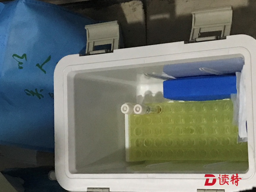 據(jù)了解,為了增加采樣的準(zhǔn)確性,每個(gè)醫(yī)學(xué)觀察居民均采用咽部和鼻腔分別取樣。醫(yī)護(hù)人員先用一個(gè)咽拭子在孫女士的咽喉內(nèi)部輕輕擦拭,另一個(gè)鼻拭子在鼻道內(nèi)鼻腭處轉(zhuǎn)動(dòng),然后將拭子放入貼有標(biāo)簽的樣本管內(nèi)。完成操作后,三位工作人員更換手套,為孫女士的愛人和孩子完成了采樣,采集的樣品被放入了工作人員隨身攜帶的“送檢專用箱”中。
