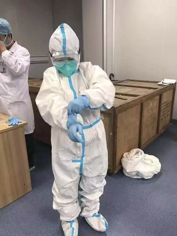 即便戴著口罩,還是能從她的語氣中聽到洋溢著的幸福感。刷過醫(yī)院醫(yī)生專有的門禁卡,袁曉珊進(jìn)入老公的辦公區(qū)域。她老公叫黃茗勇,是深圳市第三人民醫(yī)院放射科技師。見到他時(shí),1米7左右的黃茗勇身上穿著藍(lán)色醫(yī)用防護(hù)服,臉上戴著白色醫(yī)用口罩?!斑@就是我老公?!痹瑫陨阂谎劬驼J(rèn)出來了。