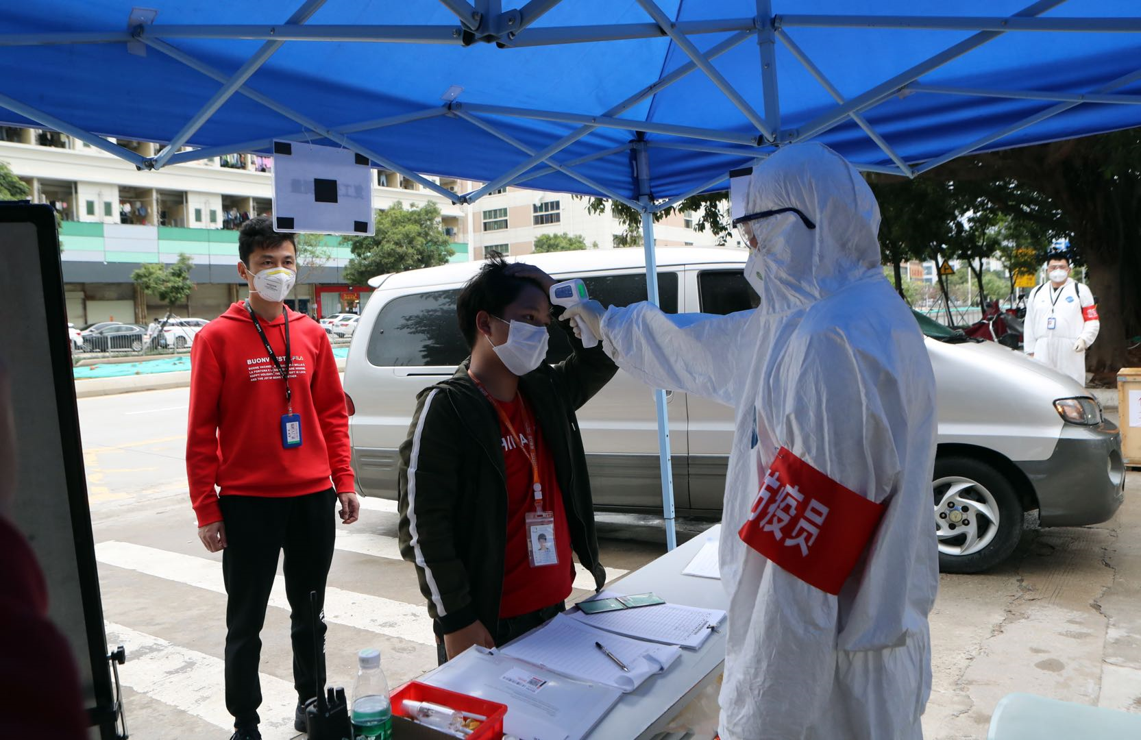 “進(jìn)入園區(qū)前,所有員工必須正確佩戴一次性口罩,自覺(jué)配合進(jìn)行體溫測(cè)量,不然不得進(jìn)入廠區(qū)?!痹陂T口執(zhí)勤的保安說(shuō)。