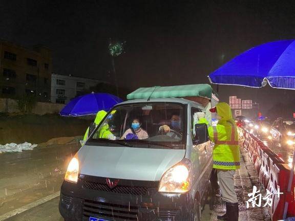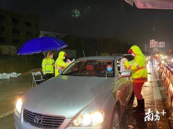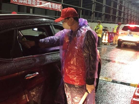 寶安區(qū)羅田檢疫站指揮部總指揮,石巖街道黨工委副書記、人大工委主任鄧亞虎,石巖街道副主任林志明和羅田交通聯(lián)合檢疫站臨時(shí)黨支部黨員冒雨檢查。當(dāng)晚,深圳市公安局經(jīng)偵支隊(duì)支援4名民警在現(xiàn)場(chǎng)冒雨防疫檢查。