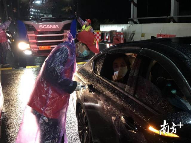 坪地街道黨工委書記曾憲旺冒雨夜巡檢查點(diǎn),了解當(dāng)日車流量以及重點(diǎn)區(qū)域人員返深情況,同時(shí)慰問一線執(zhí)勤人員及志愿者。