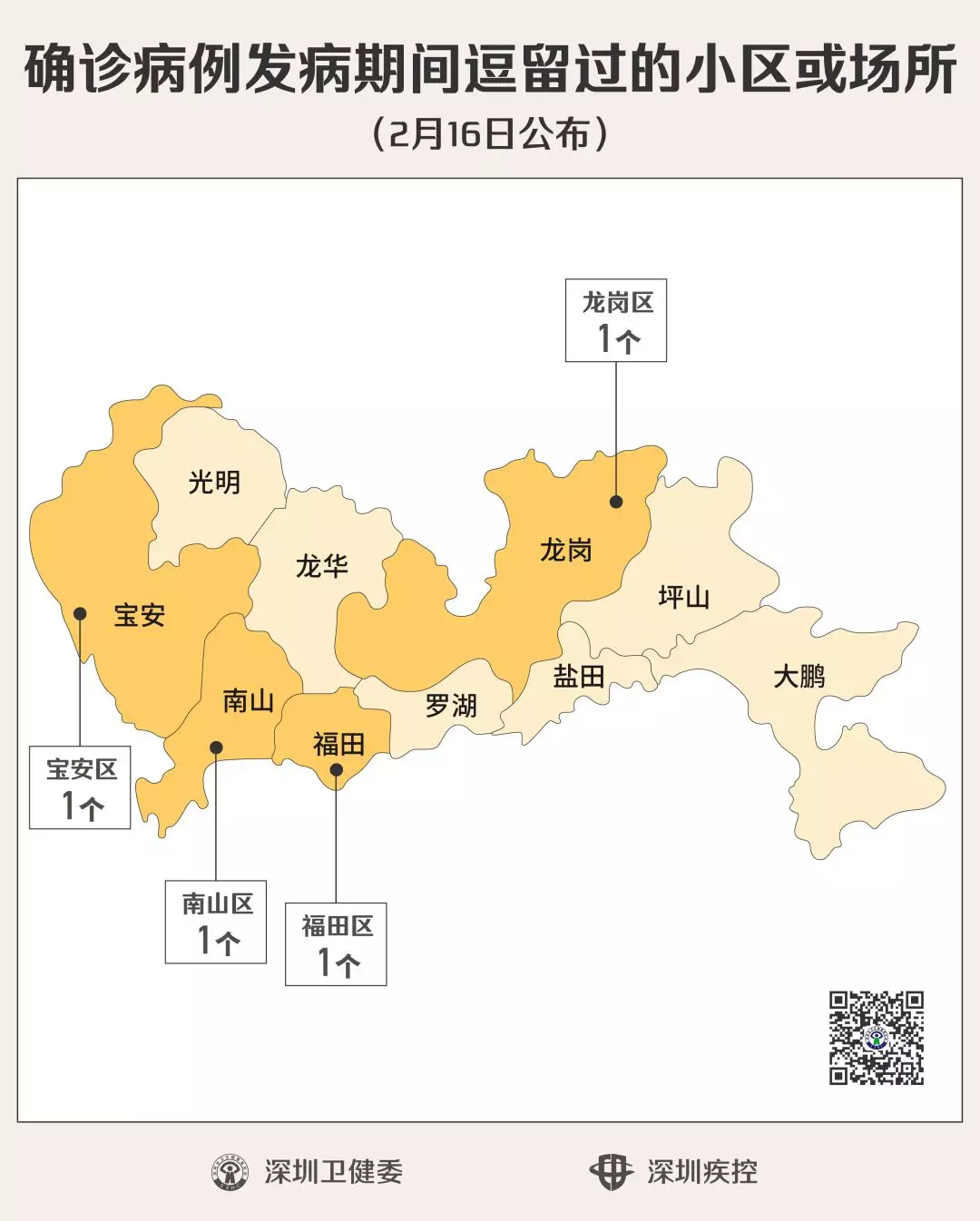 經(jīng)過(guò)疾控專(zhuān)業(yè)人員的流行病學(xué)調(diào)查確認(rèn),2月16日,深圳新公布4個(gè)“涉病”小區(qū)(場(chǎng)所),有新確診的病人在發(fā)病期間曾經(jīng)逗留。