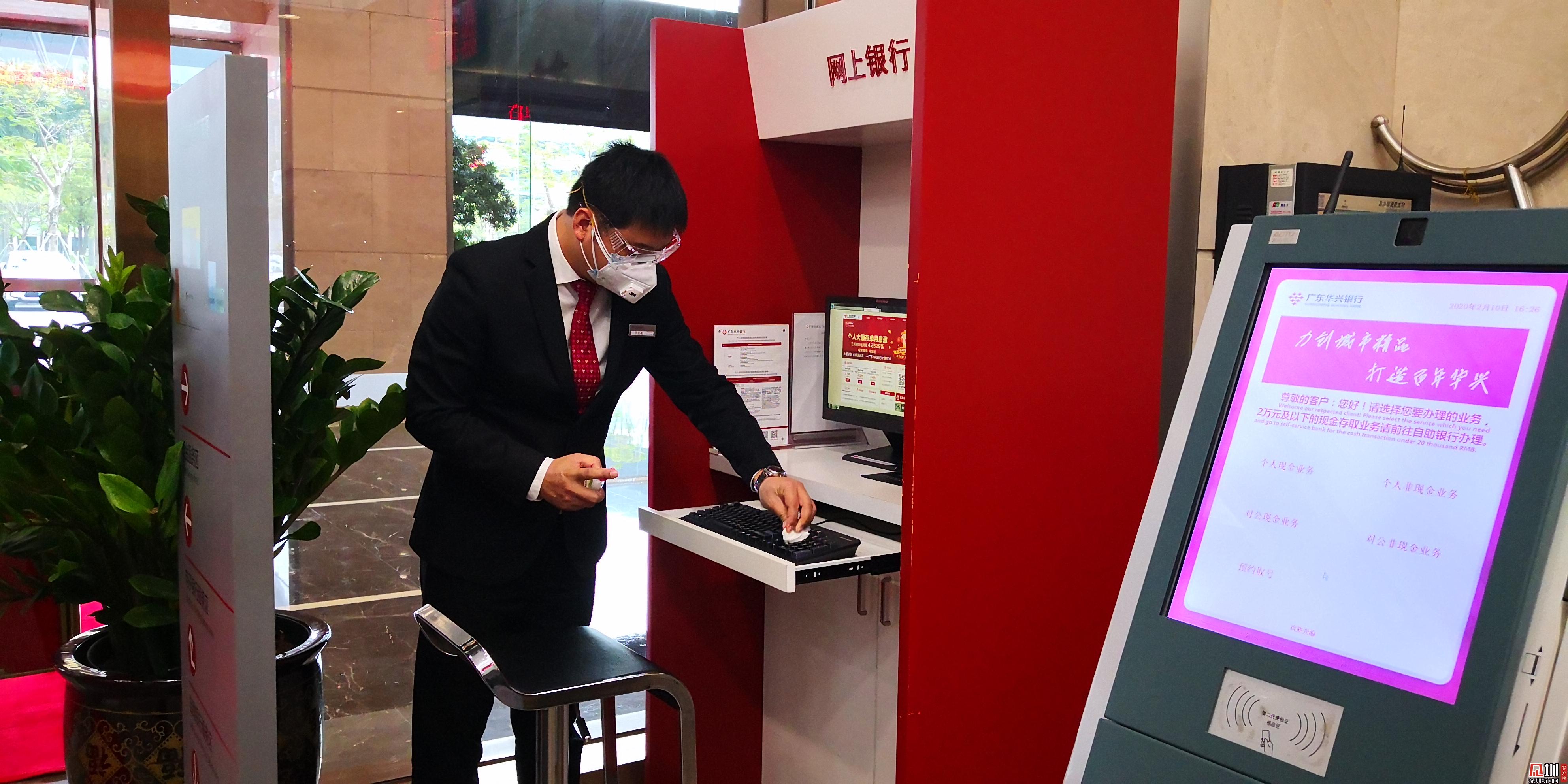 記者走訪發(fā)現(xiàn),很多銀行都適當(dāng)調(diào)整了線下營(yíng)業(yè)網(wǎng)點(diǎn)的營(yíng)業(yè)時(shí)間,以減少人員聚集。各大銀行的營(yíng)業(yè)時(shí)間可在其網(wǎng)站、公眾號(hào)、銀行App等官方渠道查詢。同時(shí)員工在上崗前必須測(cè)量體溫,在崗全程佩戴口罩。此外,網(wǎng)點(diǎn)對(duì)營(yíng)業(yè)廳等公共區(qū)域進(jìn)行全面消毒,特別是對(duì)柜臺(tái)桌椅、密碼鍵盤、自助機(jī)具等客戶接觸的設(shè)備進(jìn)行高頻消毒。進(jìn)入網(wǎng)點(diǎn)辦業(yè)務(wù)的市民,要佩戴口罩,配合網(wǎng)點(diǎn)進(jìn)行體溫測(cè)量,并登記相關(guān)信息。同時(shí),為滿足客戶現(xiàn)金存取需要,確??蛻粲蒙稀胺判腻X”、“衛(wèi)生錢”,銀行嚴(yán)格規(guī)范了現(xiàn)金業(yè)務(wù)操作,實(shí)行回收鈔券,并對(duì)運(yùn)鈔箱從網(wǎng)點(diǎn)到金庫進(jìn)行全流程消毒,切斷疫情的現(xiàn)金傳播途徑。自2020年2月3日起,深圳人行向社會(huì)公眾投放的鈔票全部為新鈔。(點(diǎn)擊相關(guān)新聞:錢幣怎么消毒?原來銀行是這么做的!)