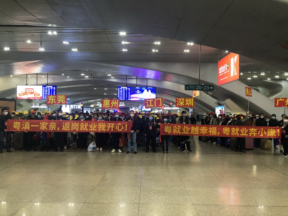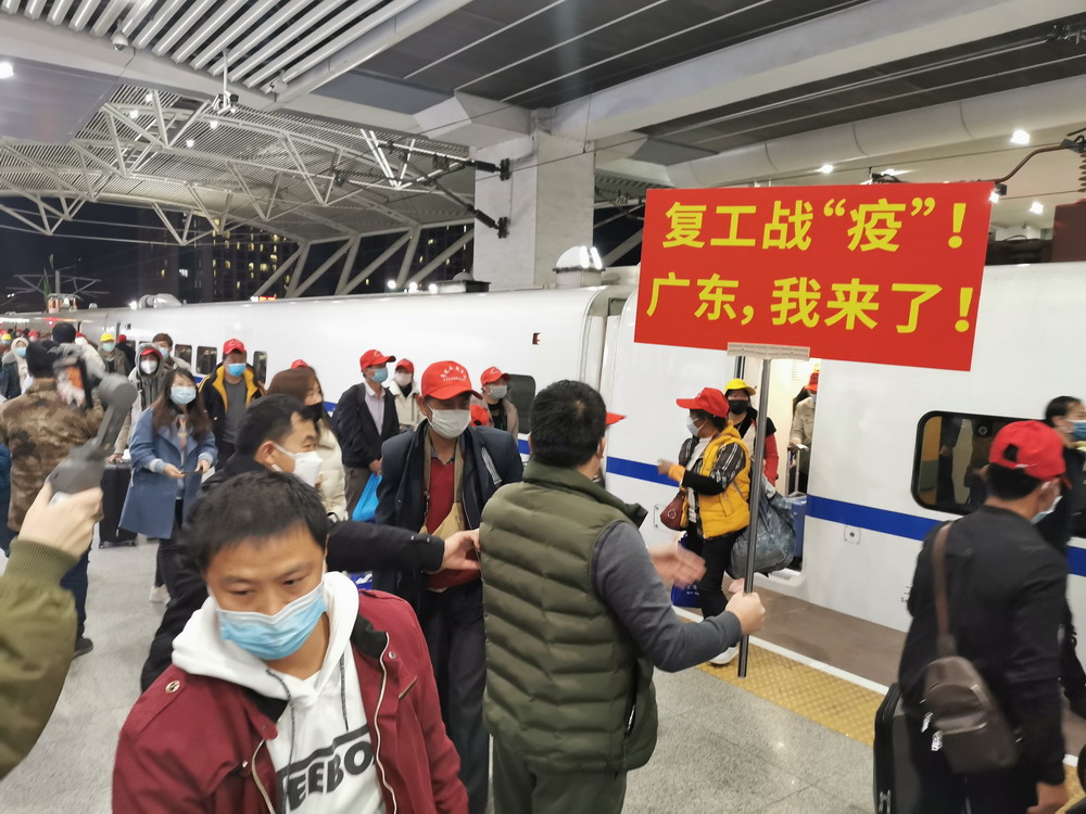 目前,在全省上下全力抗擊新冠肺炎疫情的同時,廣東各類企業(yè)已陸續(xù)復(fù)工復(fù)產(chǎn)。針對節(jié)后部分務(wù)工人員返程難、部分企業(yè)用工難的問題,廣東省人社部門在全面落實省委省政府疫情防控決策部署的前提下,主動加強與勞務(wù)輸出省份溝通對接,對疫情相對平穩(wěn)、來粵就業(yè)人員相對集中的云南、四川等部分省份,聯(lián)合當?shù)厝松绮块T共同組織開行“點對點”返粵返崗專列,為務(wù)工人員提供全流程的返崗對接服務(wù)。據(jù)悉,在本趟列車開行前,廣東省人社部門根據(jù)重點企業(yè)和項目復(fù)工復(fù)產(chǎn)安排,向云南省人社部門提供不同時段的企業(yè)空缺崗位共11萬個,由當?shù)厝松绮块T按需組織發(fā)動務(wù)工人員并開展集中健康檢測,出具健康證明;途中,云南人社部門會同鐵路部門,共同落實好務(wù)工人員進站、候車、乘車、出站等環(huán)節(jié)的疫情防控和客運服務(wù)等措施,確保復(fù)工人員安全、有序、溫馨出行;到粵后,廣東人社部門提供專車將務(wù)工人員接駁至企業(yè),幫助企業(yè)做好疫情期間員工組織接收、上崗復(fù)工等準備工作。廣東省人社廳相關(guān)工作人員表示:“今年受疫情影響,節(jié)后短期缺工現(xiàn)象比往年更為突出。特殊情況需要特別舉措,除了讓務(wù)工者免費乘坐返崗專列,我們還為一些去汕頭、陽江等較遠地區(qū)企業(yè)而沒法當天到達的零散務(wù)工者,貼心地提供免費住宿,還買好次日去企業(yè)所在地的車票,送他們上車,并對接當?shù)厝松绮块T安排車輛接駁至廠。我們通過這種‘一條龍’無縫對接服務(wù),既滿足企業(yè)復(fù)產(chǎn)的用工需求,又降低返程運輸?shù)囊咔閭鞑ワL(fēng)險”。