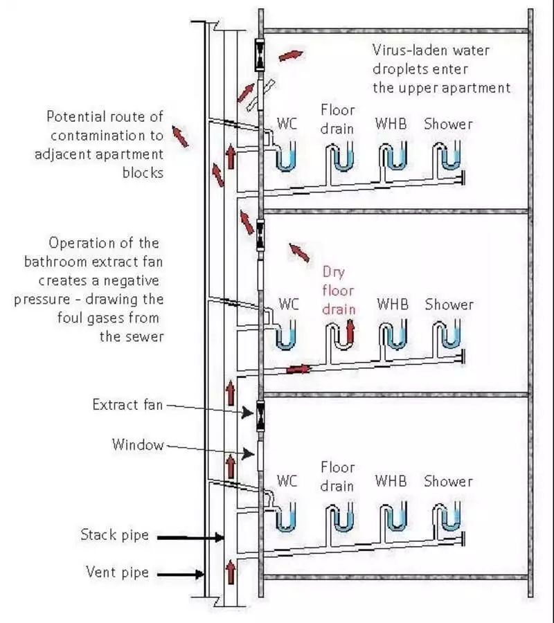 2003年SARS期間,香港“淘大花園事件”備受矚目,目前對(duì)該事件的病毒傳播方式復(fù)盤(pán),可能由于該樓棟管道設(shè)計(jì)存在隱患。