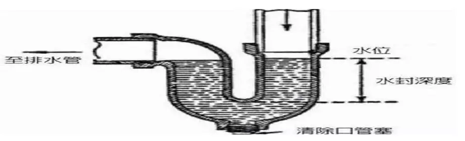 在建筑排水管道中,水封指的是設(shè)在衛(wèi)生器具排水口下,用來(lái)抵抗排水管內(nèi)氣壓差變化,防止排水管道系統(tǒng)中氣體竄入室內(nèi)的一定高度的水柱,通常用存水彎來(lái)實(shí)現(xiàn)。