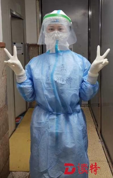 在忙碌之余,3位隊(duì)員也收獲了一份感動。原來,因?yàn)樗齻兌荚诜雷o(hù)服外面寫上了“廣東”和自己的名字,所以一進(jìn)入隔離病房后,就有患者向她們道謝:謝謝廣東的支援,你們辛苦了!“那一瞬間真的感覺很暖心,很感動?!?/p>