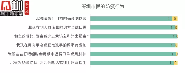 2020年2月9日-11日,深圳疾病預防控制中心聯合深圳大學傳播學院開展了《深圳市民新冠肺炎調查》。在三天時間內共回收到8179份有效答卷。結果顯示,深圳市民對于新冠肺炎知識的了解程度達到了較高水平。近8成受訪市民對疫情發(fā)展持積極態(tài)度,超9成受訪市民能做好自我防護,對于病原、疾病的典型癥狀、傳染源特征、洗手的有效預防性,以及高危人群特征也均超過了95%。
