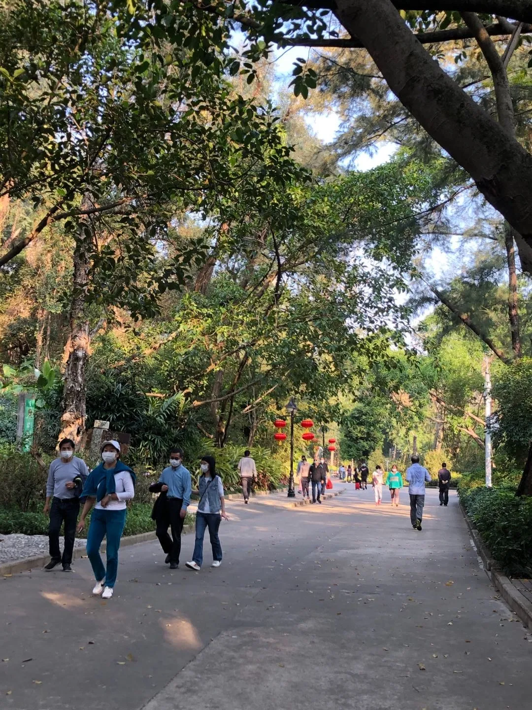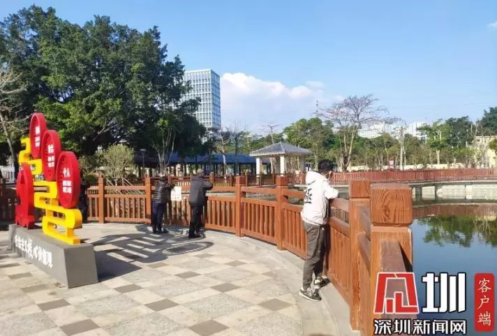 在光明區(qū)塘家公園,每隔一小段距離,就有零星幾個當(dāng)?shù)氐娜罕姡诠珗@的池塘邊觀賞風(fēng)景,散散心,均有佩戴口罩。