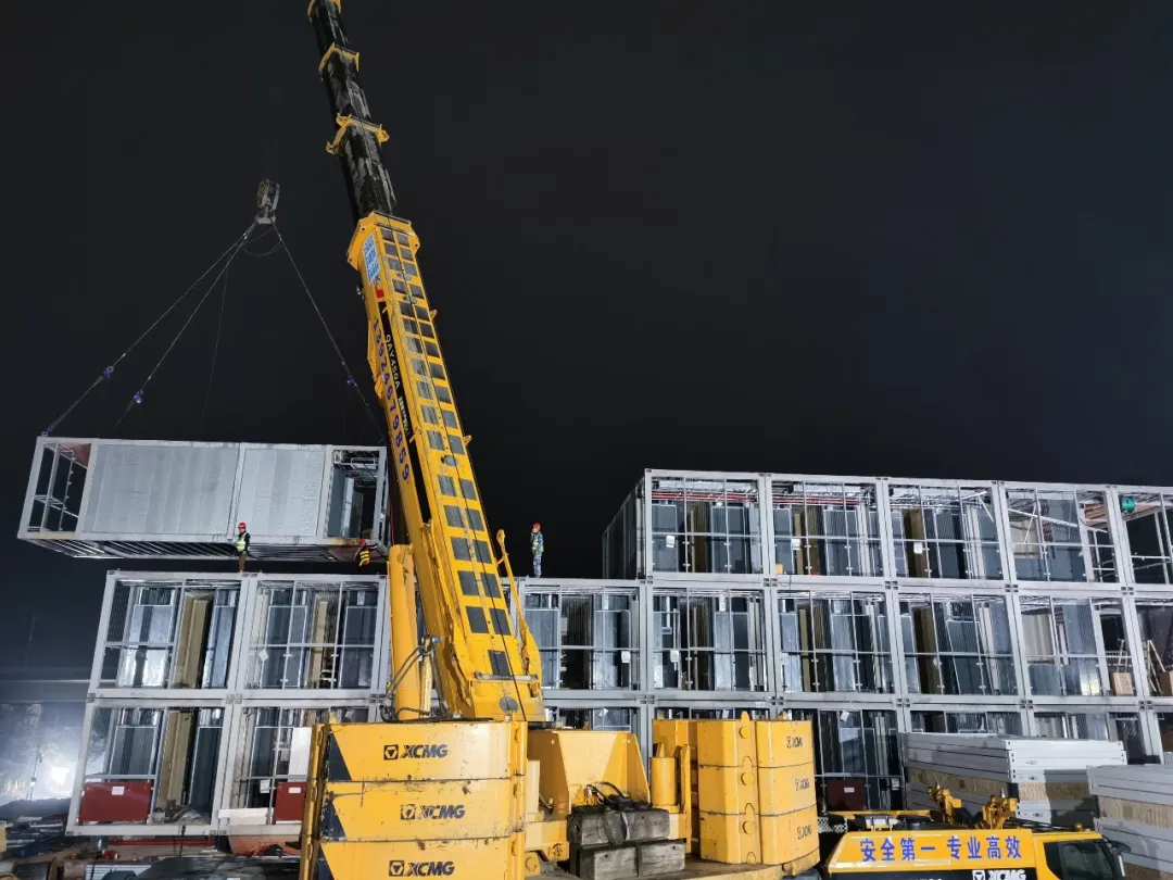 經(jīng)過(guò)多方協(xié)調(diào),在十多名交警的現(xiàn)場(chǎng)積極指揮調(diào)度下,2月11日凌晨4點(diǎn)10分,第一個(gè)模塊順利進(jìn)場(chǎng),早已等候在場(chǎng)的吊裝車(chē)快速完成了吊裝,標(biāo)志著中集模塊化建筑正式在深圳市三醫(yī)項(xiàng)目現(xiàn)場(chǎng)落地。隨后,剩余模塊運(yùn)輸車(chē)在現(xiàn)場(chǎng)交警的指揮調(diào)度下,按序進(jìn)場(chǎng)。2月12日凌晨3點(diǎn)58分,最后一個(gè)模塊吊裝完成,標(biāo)志著該公寓樓項(xiàng)目正式封頂。2月18日,該公寓樓項(xiàng)目按時(shí)完工。