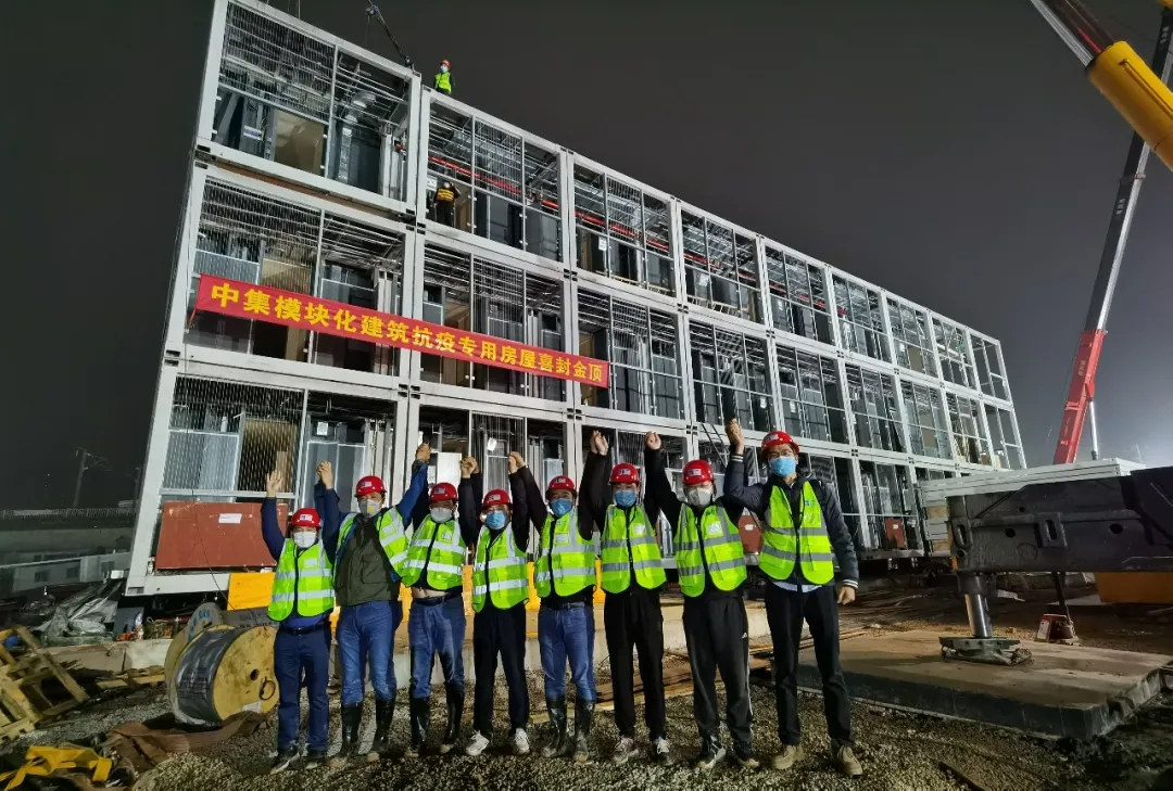 24小時(shí)完成所有模塊吊裝 醫(yī)護(hù)公寓封頂