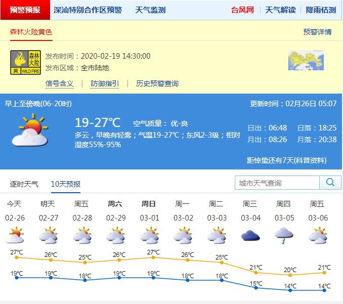 深圳今日最高溫27℃!森林火險(xiǎn)黃色預(yù)警持續(xù)生效中